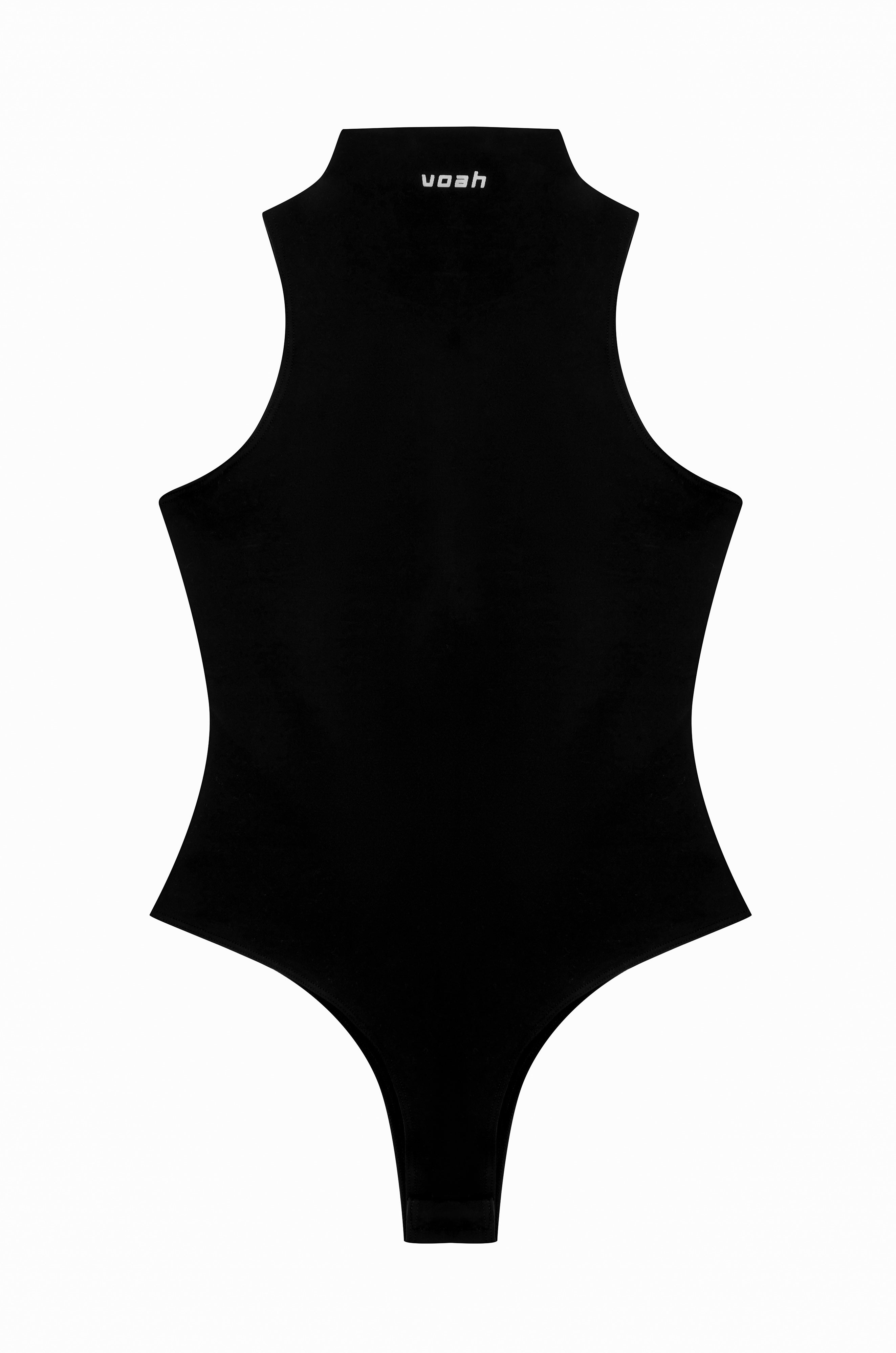 Sleek and sculpting, the Mock Neck Bodysuit in black offers next-level sophistication.